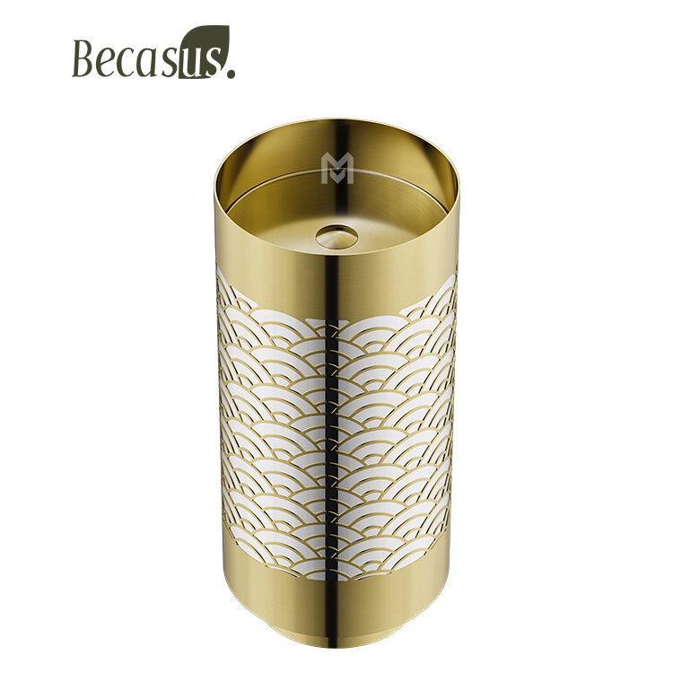 This is a freestanding washbasin crafted from 304/316 stainless steel. It comes in a variety of colors, including brushed finish, brushed gold, brushed rose gold, and brushed gun gray. With its sleek and minimalist design, it can seamlessly integrate into different bathroom styles, adding a touch of modern elegance. Whether your bathroom is designed in a contemporary, industrial, or even a more luxurious style, this washbasin can complement it perfectly.